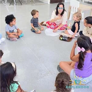 maestra-leyendo-cuento-a-grupo-de-ninos-en-circulo-de-aprendizaje-esplendor-montessori-puerto-rico